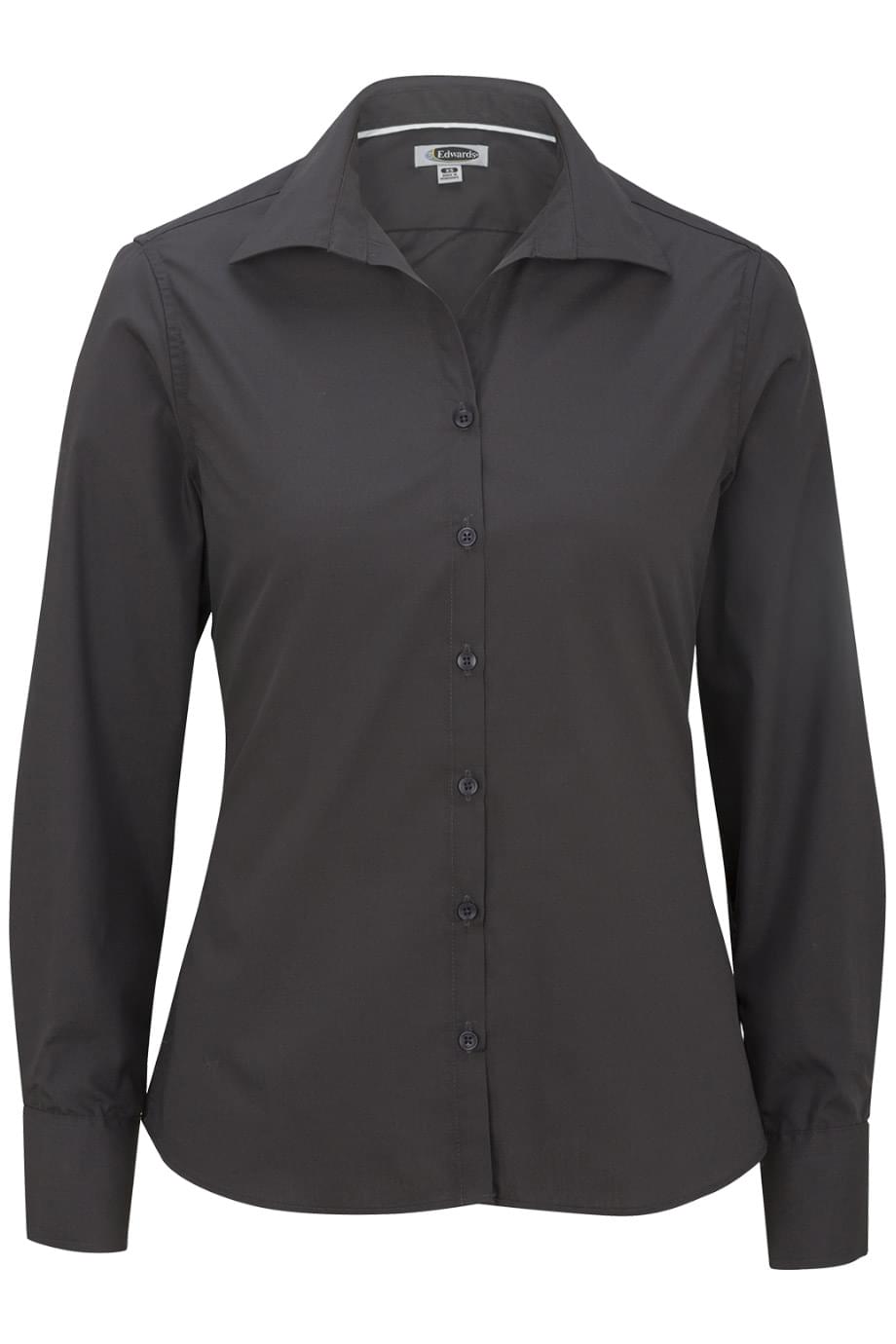 This casual poplin feels like a dress blouse. Stands up to demanding wear and is offered in a plethora of colors. Great for restaurants; delivery services or customer service. Embroiders well.